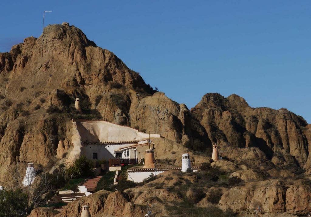 Im 13. Jahrhundert nahmen die katholischen Könige Granada ein und verdrängten die hier lebenden Mauren. Auch hier in Guadix wurden die Andersgläubigen aus der Medina zunächst in die Vororte und dann in die Randbezirke vertrieben. Hier bauten sie sich Wohnhöhlen, indem sie Löcher in den weichen Tuffstein gruben. Höhlen sind günstig, einen Teil der Wände liefert die Natur. Außerdem bieten sie die perfekte Tarnung: Man sieht sie erst, wenn man direkt davor steht.