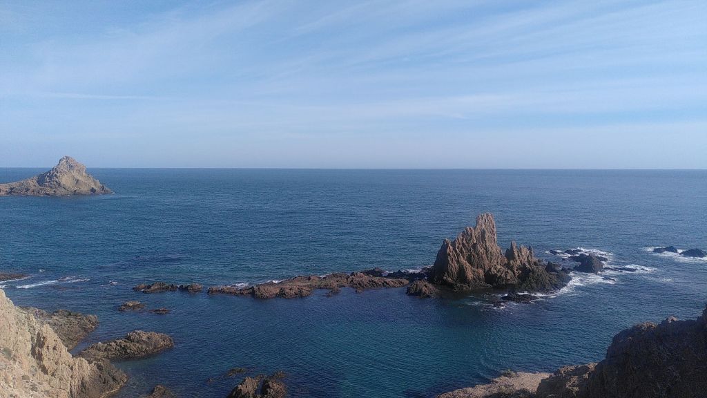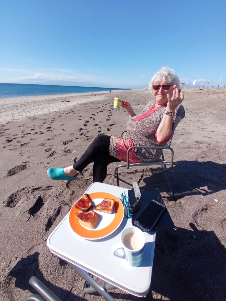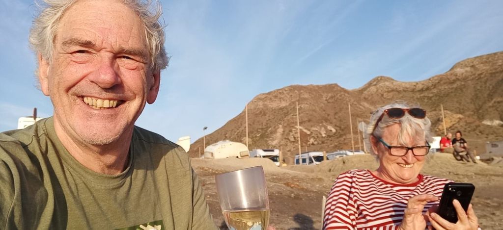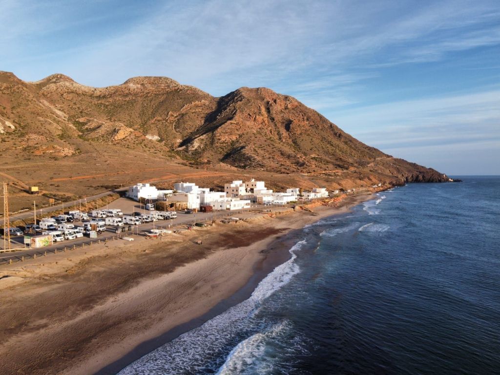 Herrjeh! Das Clo ist voll. Statt nach dem Frühstück wie geplant mit unserer Wanderung aufs Kap zu starten, müssen wir uns jetzt erstmal um die Entsorgung kümmern. Park4Night weiß zum Glück Rat: wenige Kilometer vom Cabo de Gata entfernt gibt es eine Tankstelle, die Ver- und Entsorgung für Wohnmobile anbietet. Also los, hilft ja nichts. Als wir nach getaner Arbeit zu unserem Stellplatz zurückkehren, können wir uns freuen: jetzt ist sogar ein Platz in der ersten Reihe direkt vorm Meer frei.