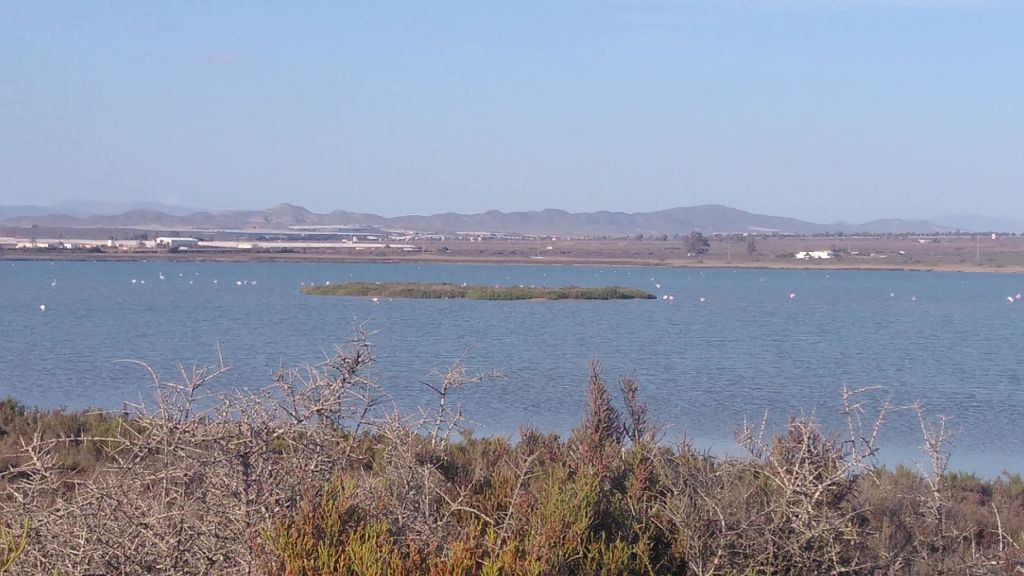 Wir sausen wieder hinunter, fahren am Dorf vorbei in die Saline und schauen noch eine Weile den Flamingos zu, die wir vorhin im Vorbeifahren aus dem Auto gesehen haben. Zwei Rotschenkel lassen es sich hier auch gut gehen. So nah hab ich diese Vögel, die ich von der Nordsee kenne, noch nie gesehen. Aber um ein gutes Foto zu machen, sind alle Vögel zu weit weg.