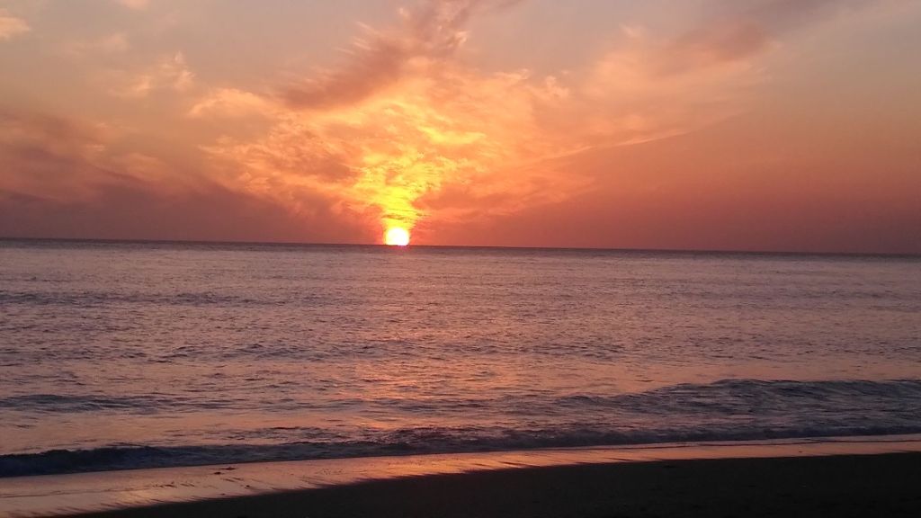 Ich sitze am Strand und blogge. Das Meer rauscht, es hat immer noch 20 Grad und wir warten auf den Sonnenuntergang. Ab und zu kommt mal jemand mit seinem Hund vorbei, ansonsten ist hier kein Mensch. Am Strand. Hinter uns sieht es etwas anders aus.